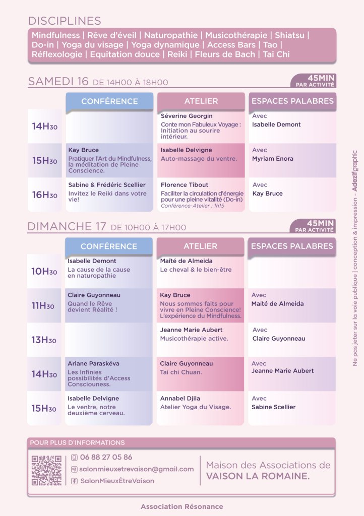 Je serai présente le samedi 16, animant également une conférence- atelier « faciliter la circulation d’énergie pour une pleine vitalité (do-in) », et vous y recevrai avec joie.
